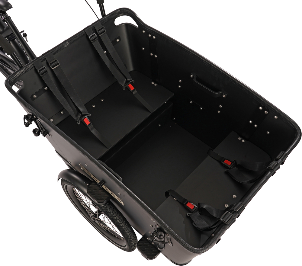 De accu is netjes weggewerkt in de bak en is afneembaar. Er zijn verschillende accu-opties beschikbaar, waarmee je – afhankelijk van de gekozen uitvoering – verschillende afstanden met ondersteuning kunt afleggen.