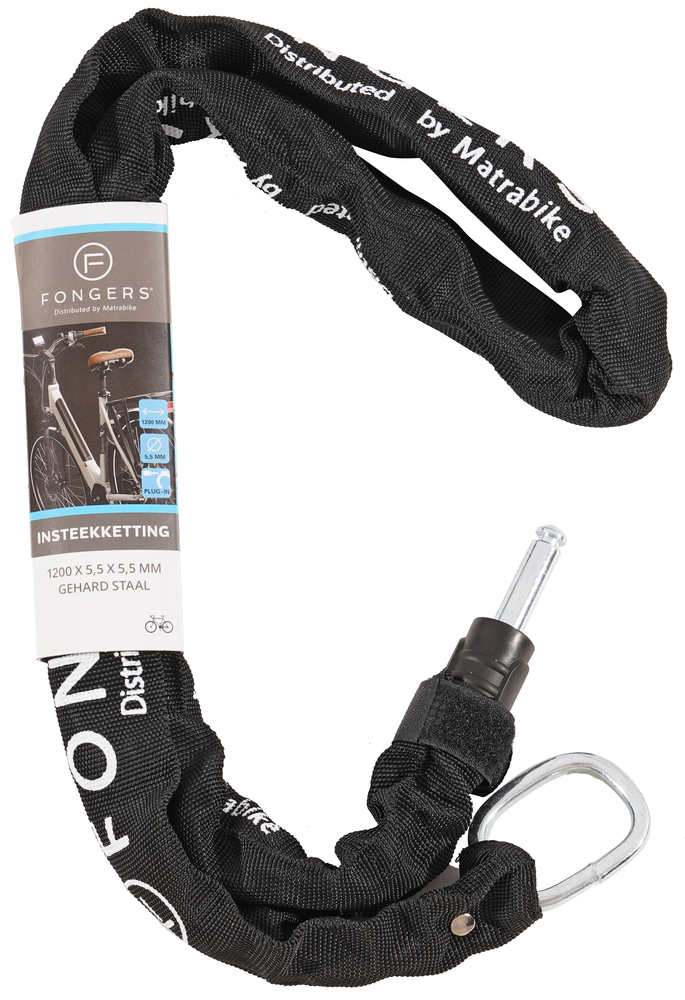De Fongers Insteekketting 120 cm is gemaakt van gehard staal en heeft een 10 mm dikke pen. De afmetingen van de insteekketting zijn: 120 cm x 8.3 mm. Geschikt voor het Matra Plug-in Ringslot.
